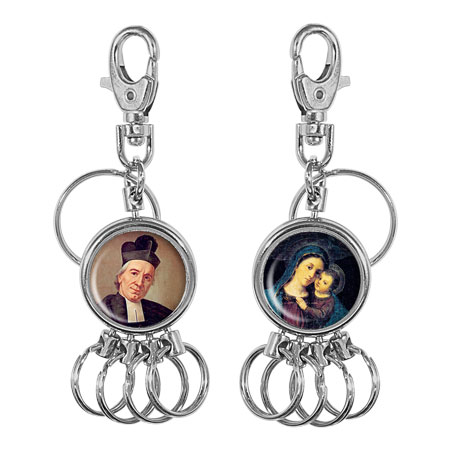 Metal nickel keychain with 5 rings + snap-hook