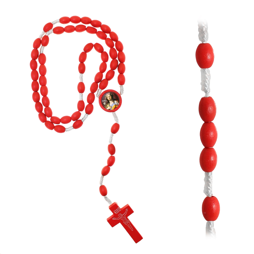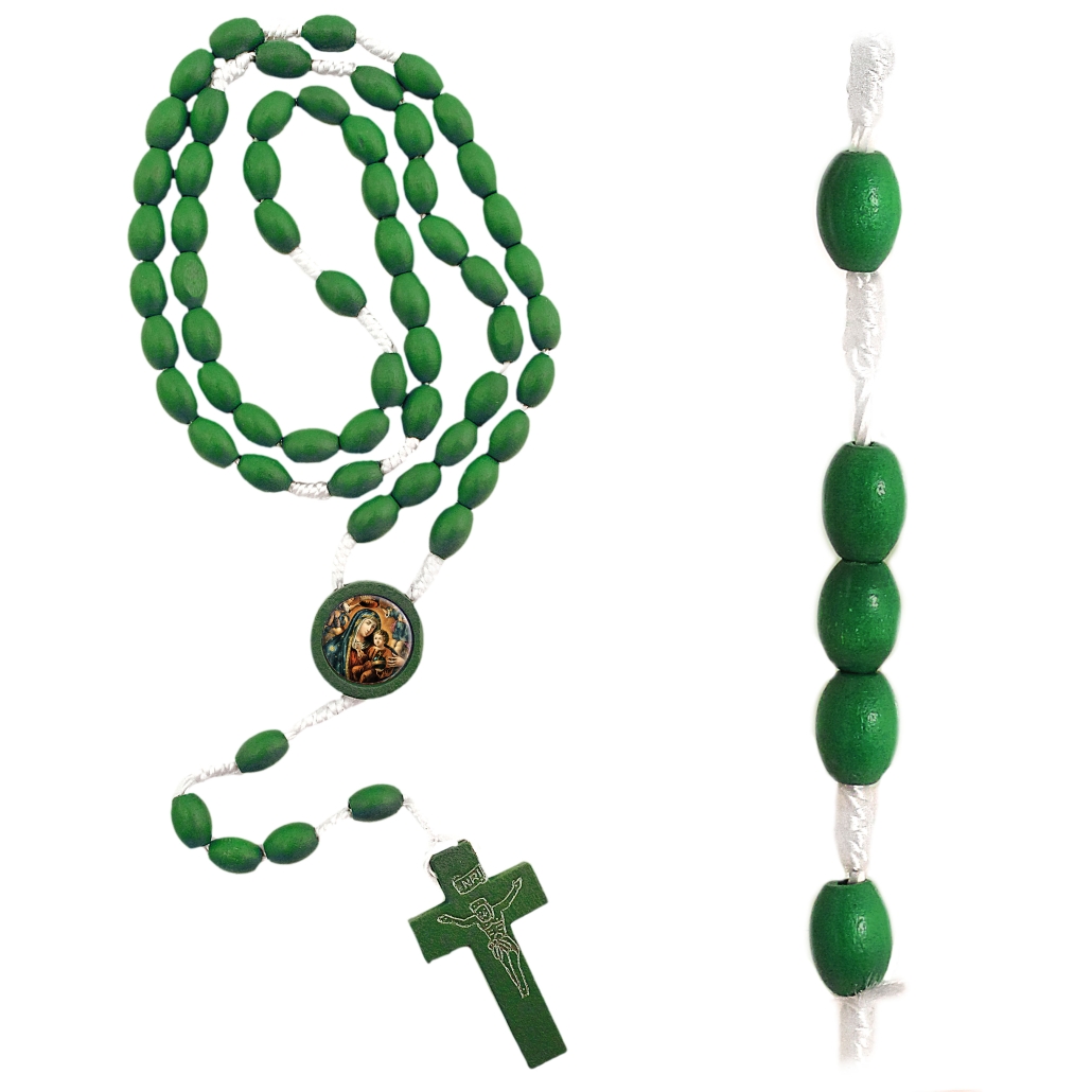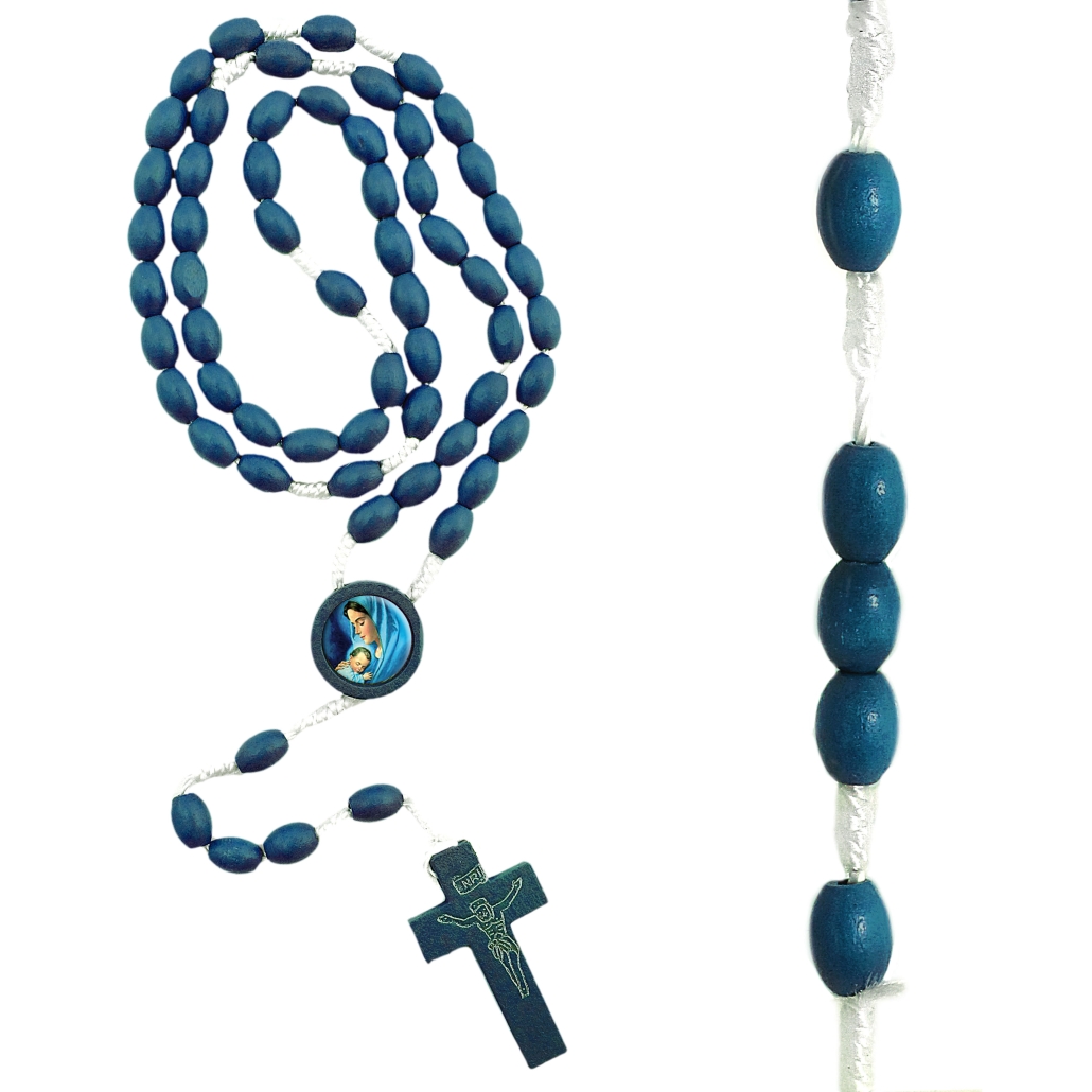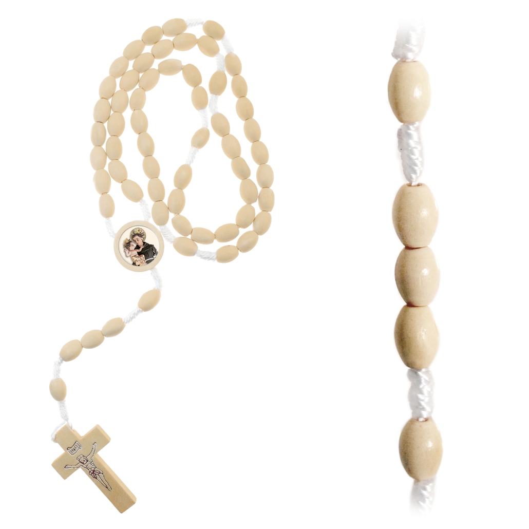 Oval wooden rosary 59 beads 7×10 mm setting with cord
