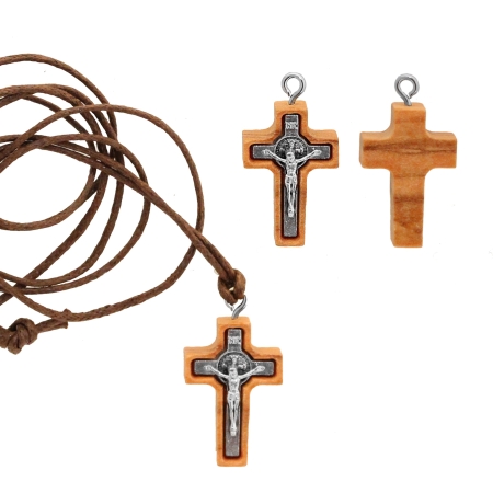 Olive wood cross and metal crucifix 22×15 mm
