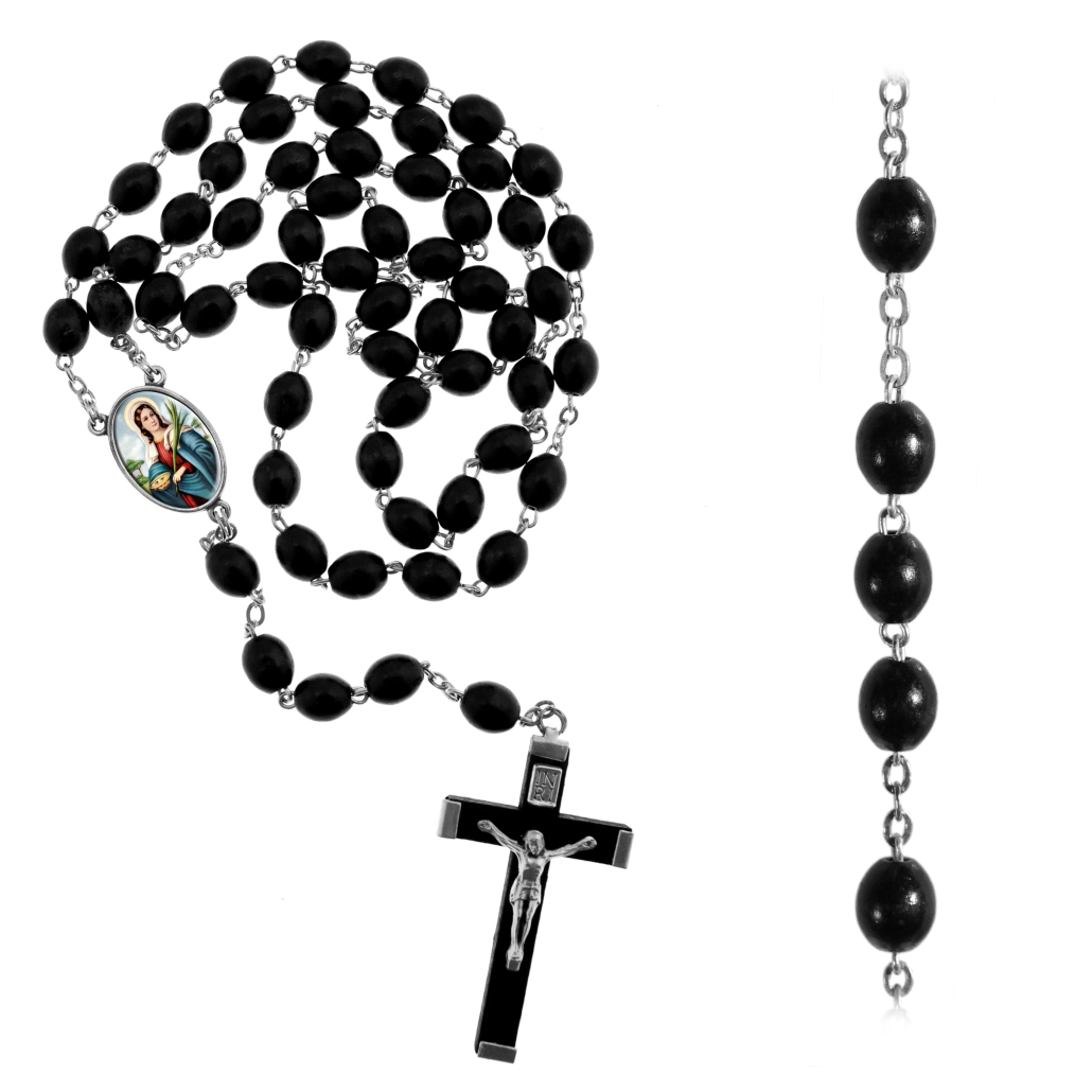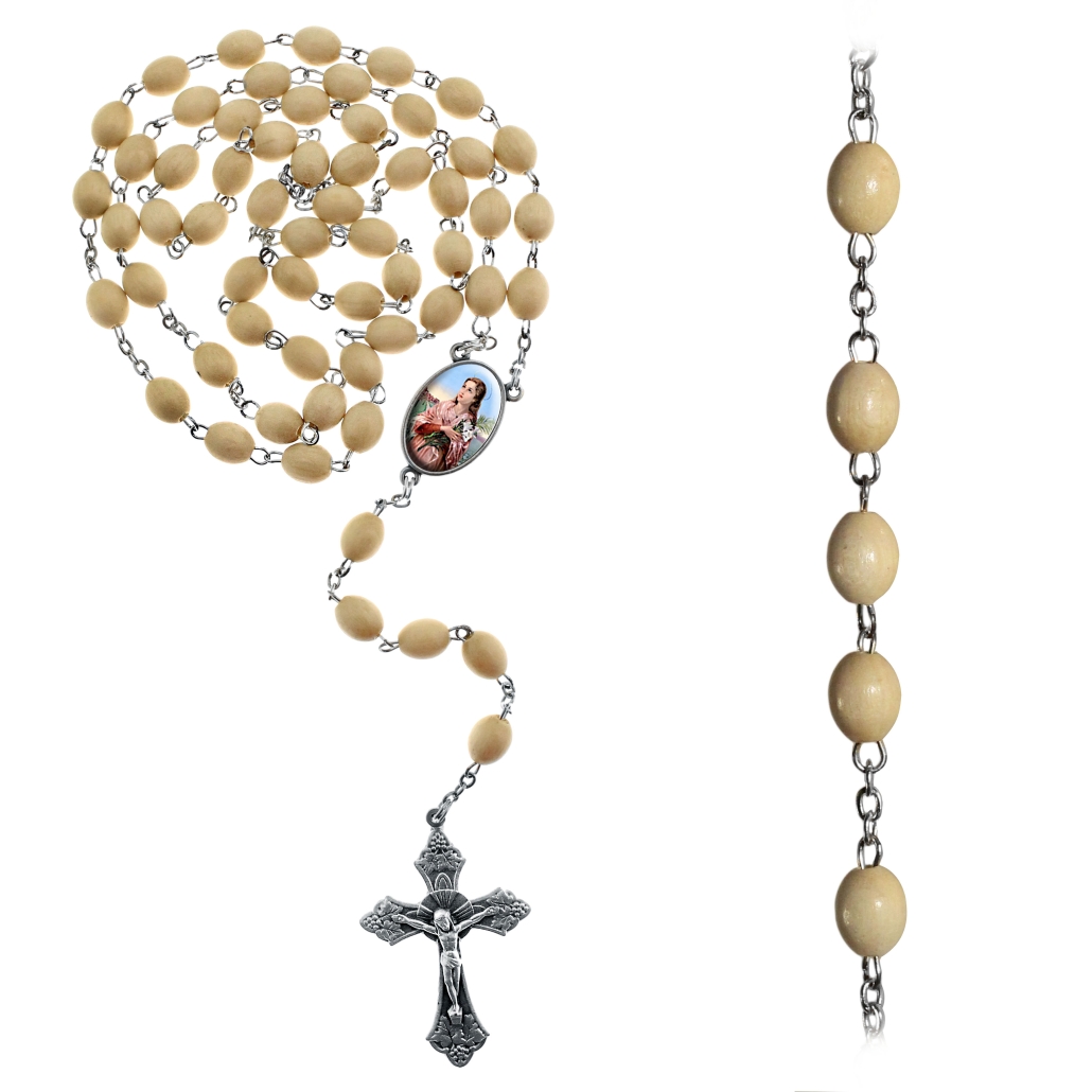 Carved wooden oval rosary 59 beads 7×9 mm with customizable cross and ...
