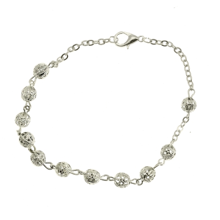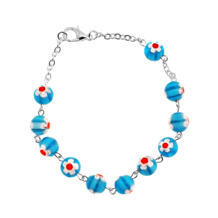 Pearly glass oval set of ten bracelet 11 beads 5×7 mm with silver brass coated string and chain