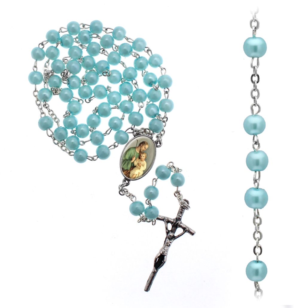 Pearly glass rosary 59 beads Ø 8 mm with customizable cross and cruise