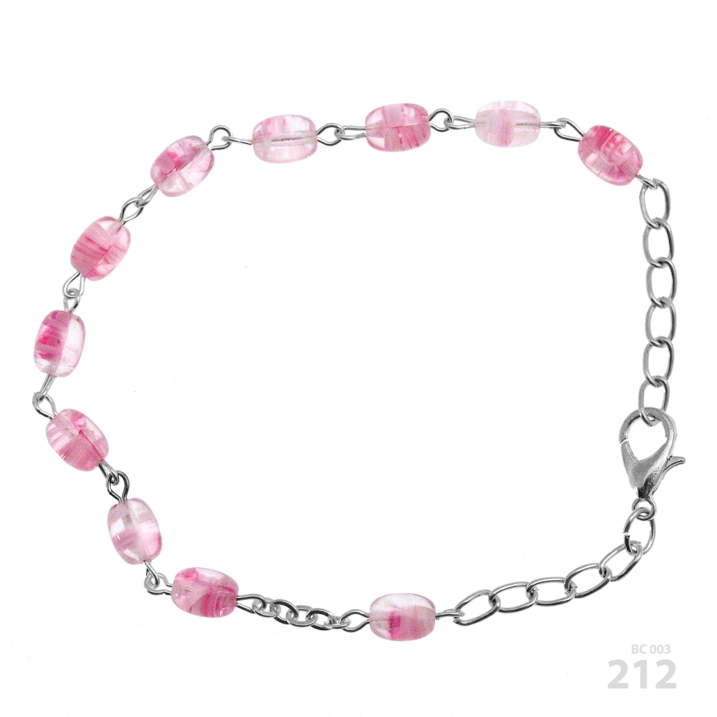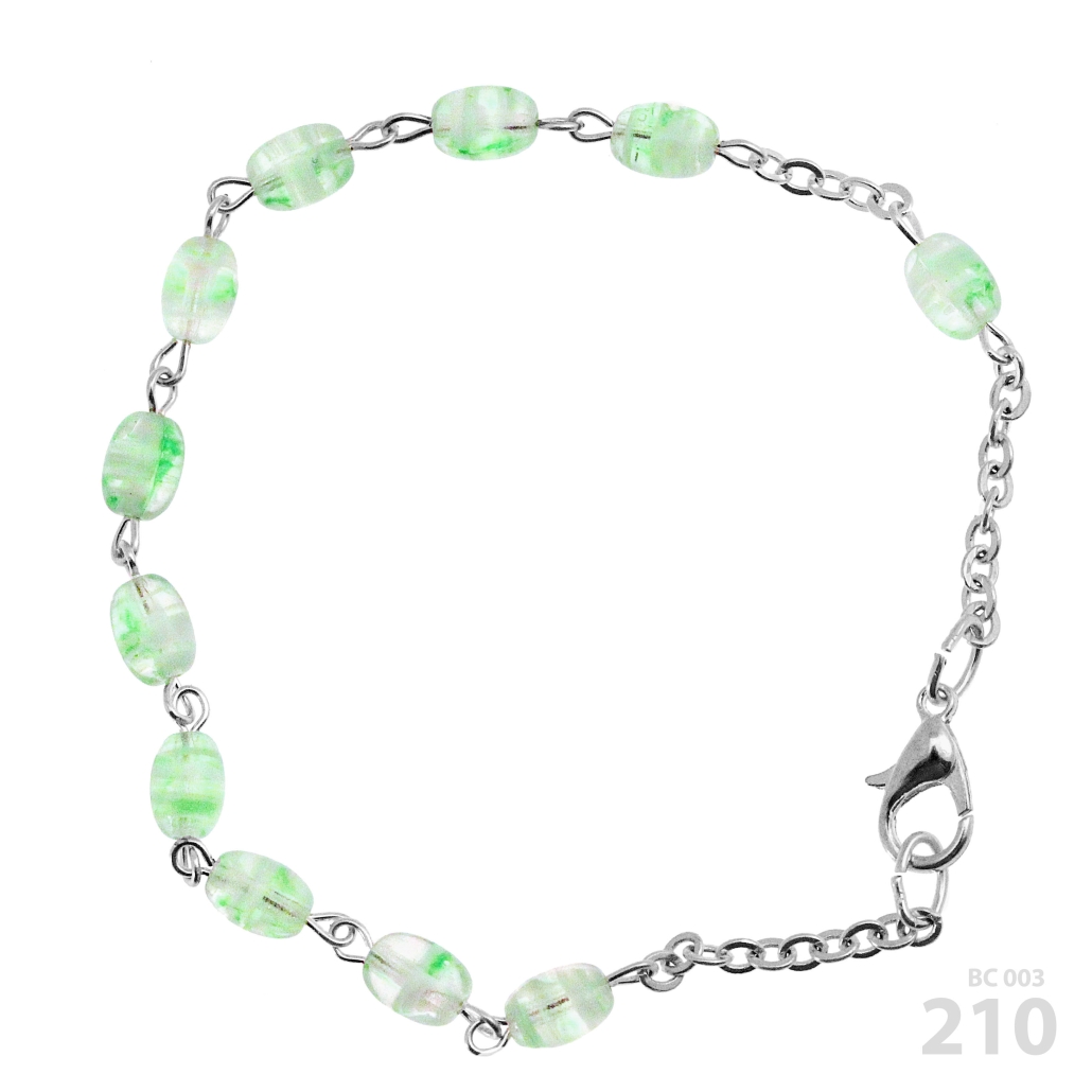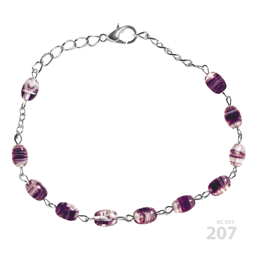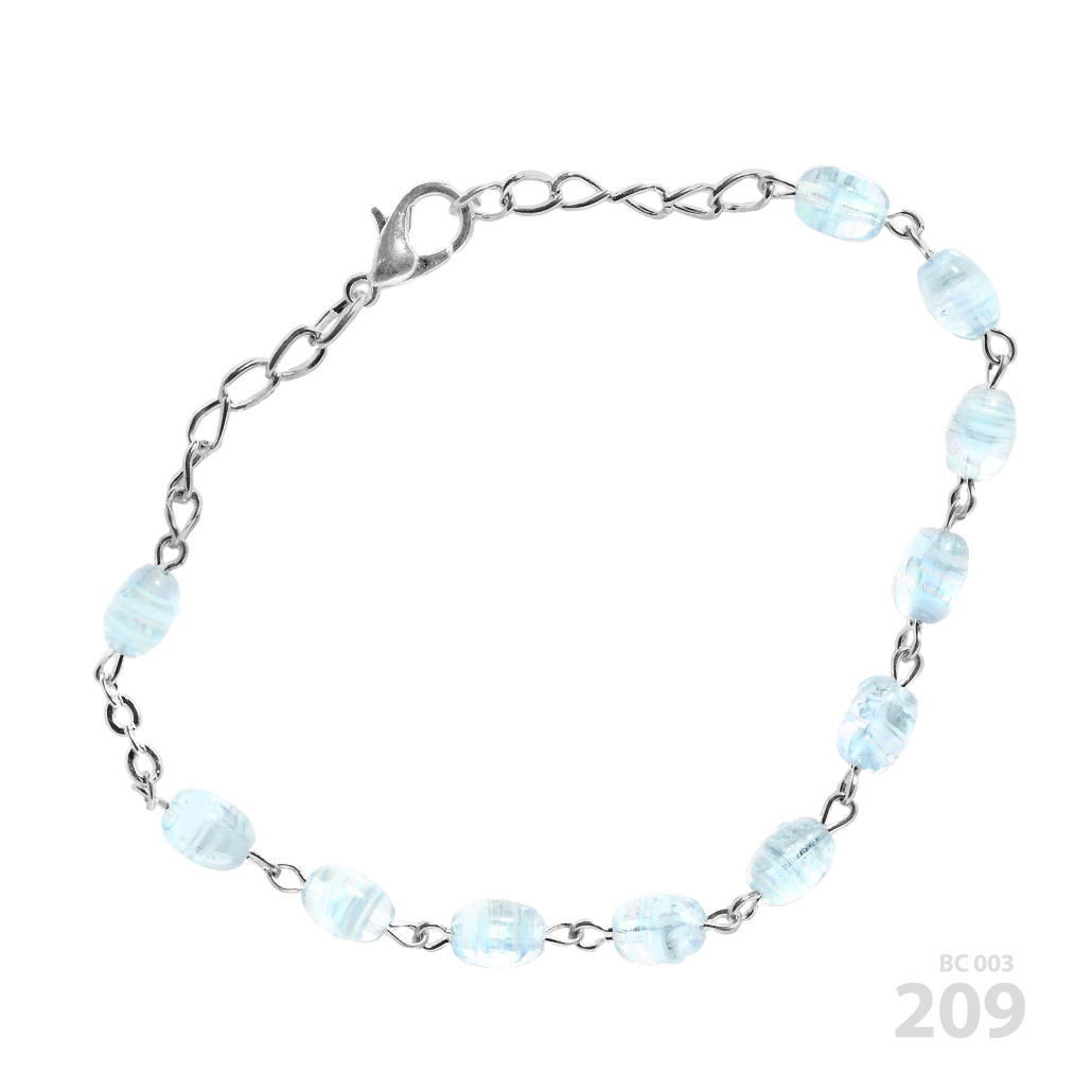 Smooth veined crystal set of ten oval rosary bracelet 11 beads 5×7 mm with silver brass coated string and chain