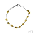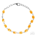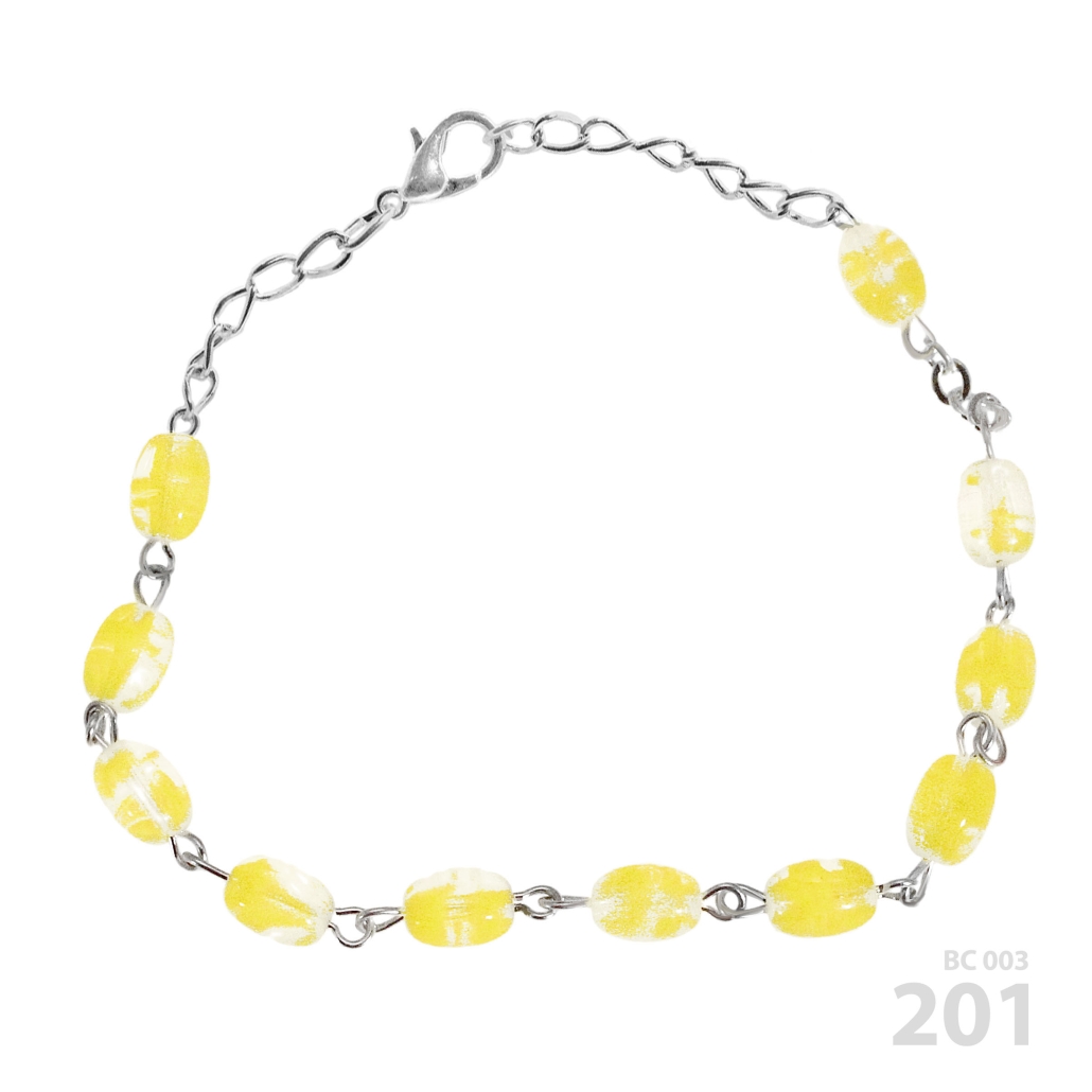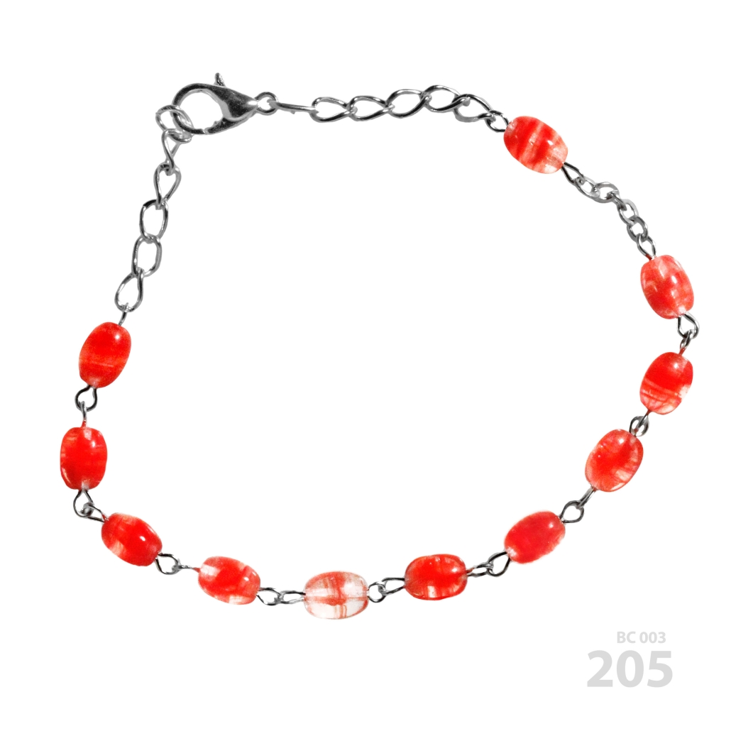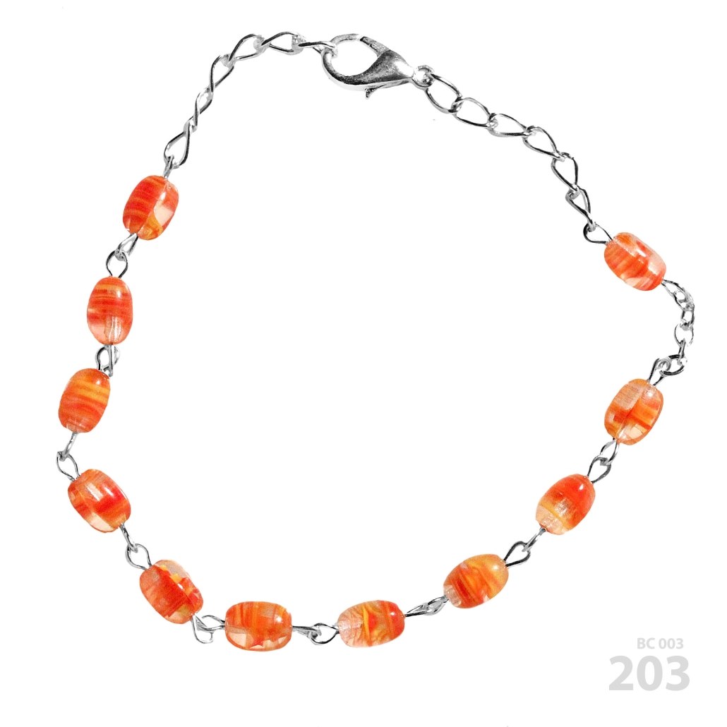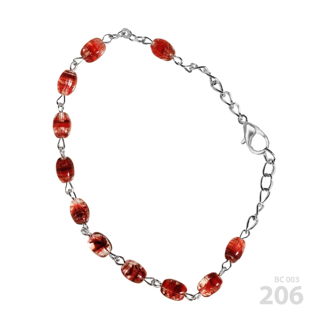 Smooth veined crystal set of ten oval rosary bracelet 11 beads 5×7 mm with silver brass coated string and chain