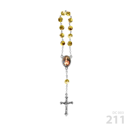 Smooth veined crystal set of ten rosary 11 beads Ø 7 mm with brass string and chain, metal cross and cruise, silver coated, tutto patinato argento. Optionally cross – cruise 2 photos 11×15 mm
