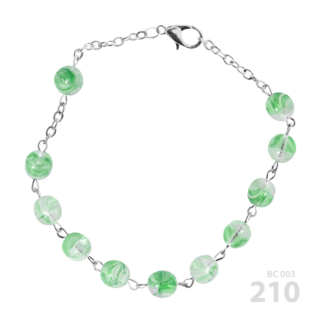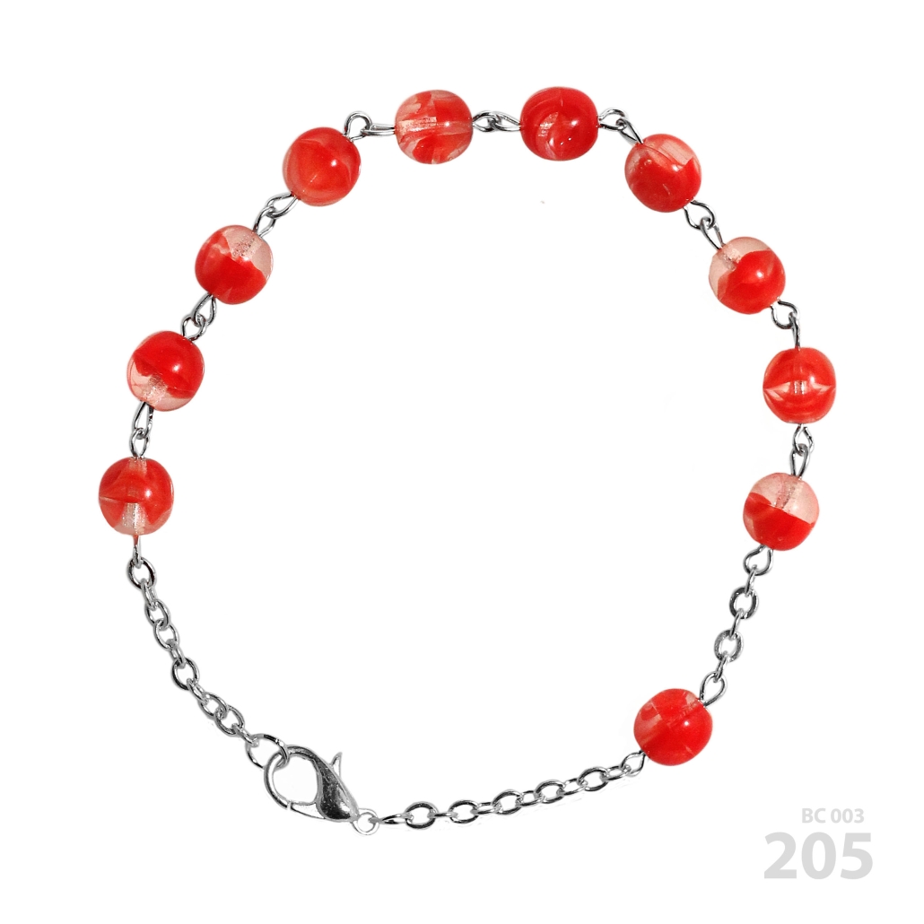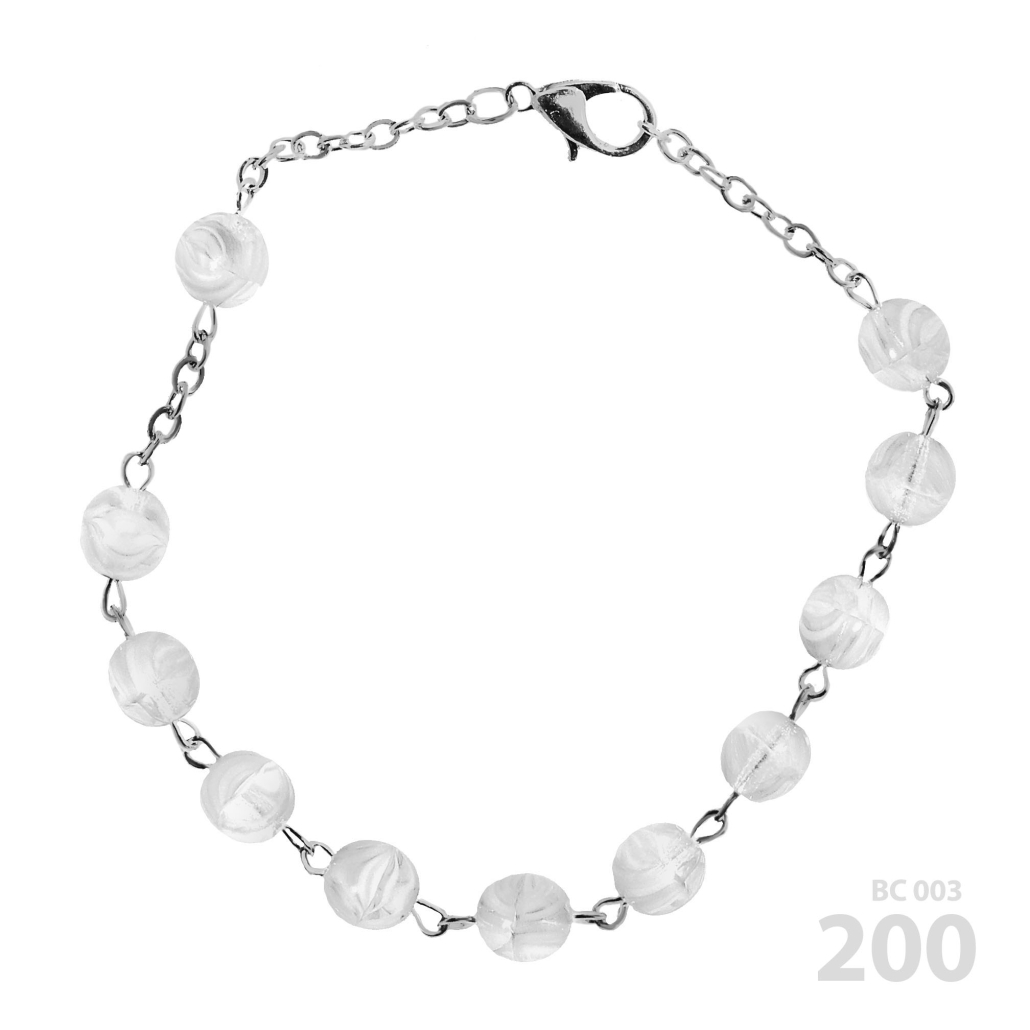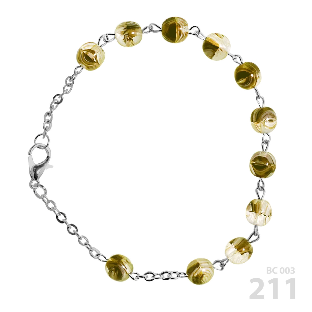 Smooth veined crystal set of ten rosary bracelet 11 beads Ø 7 mm with silver brass coated string and chain