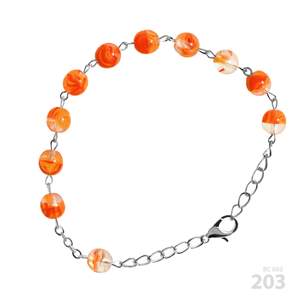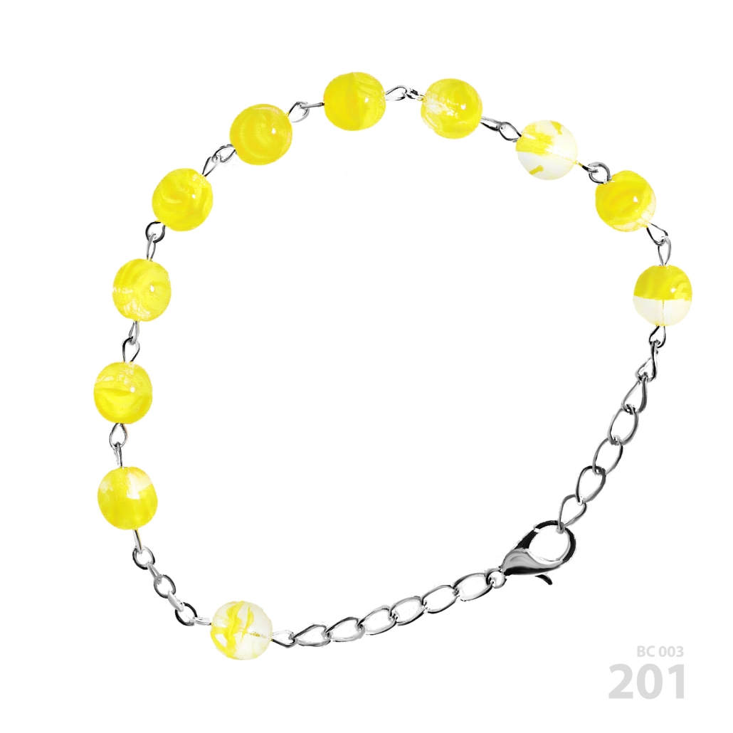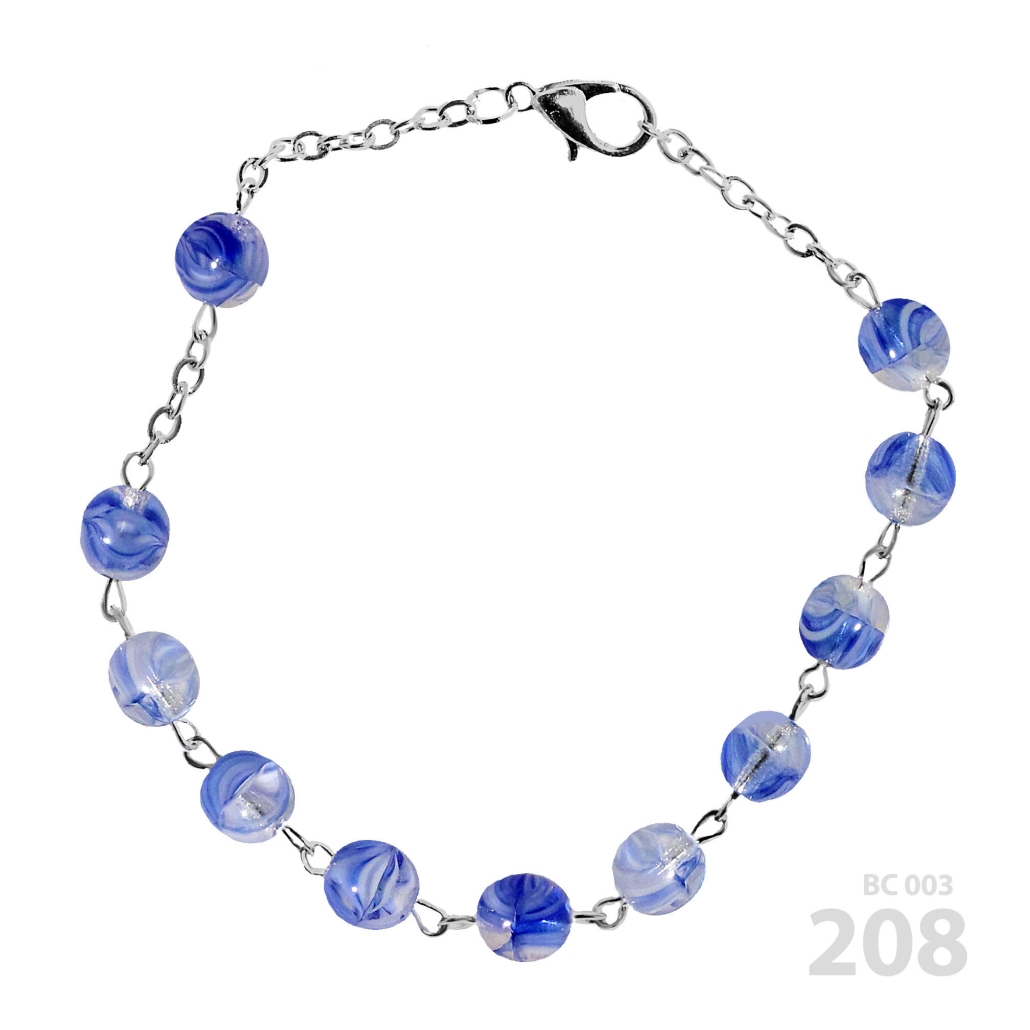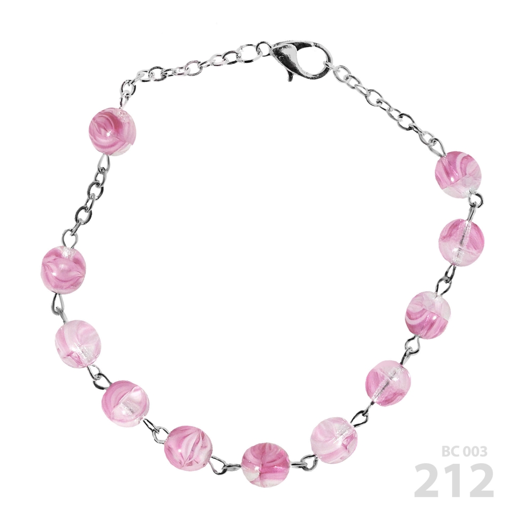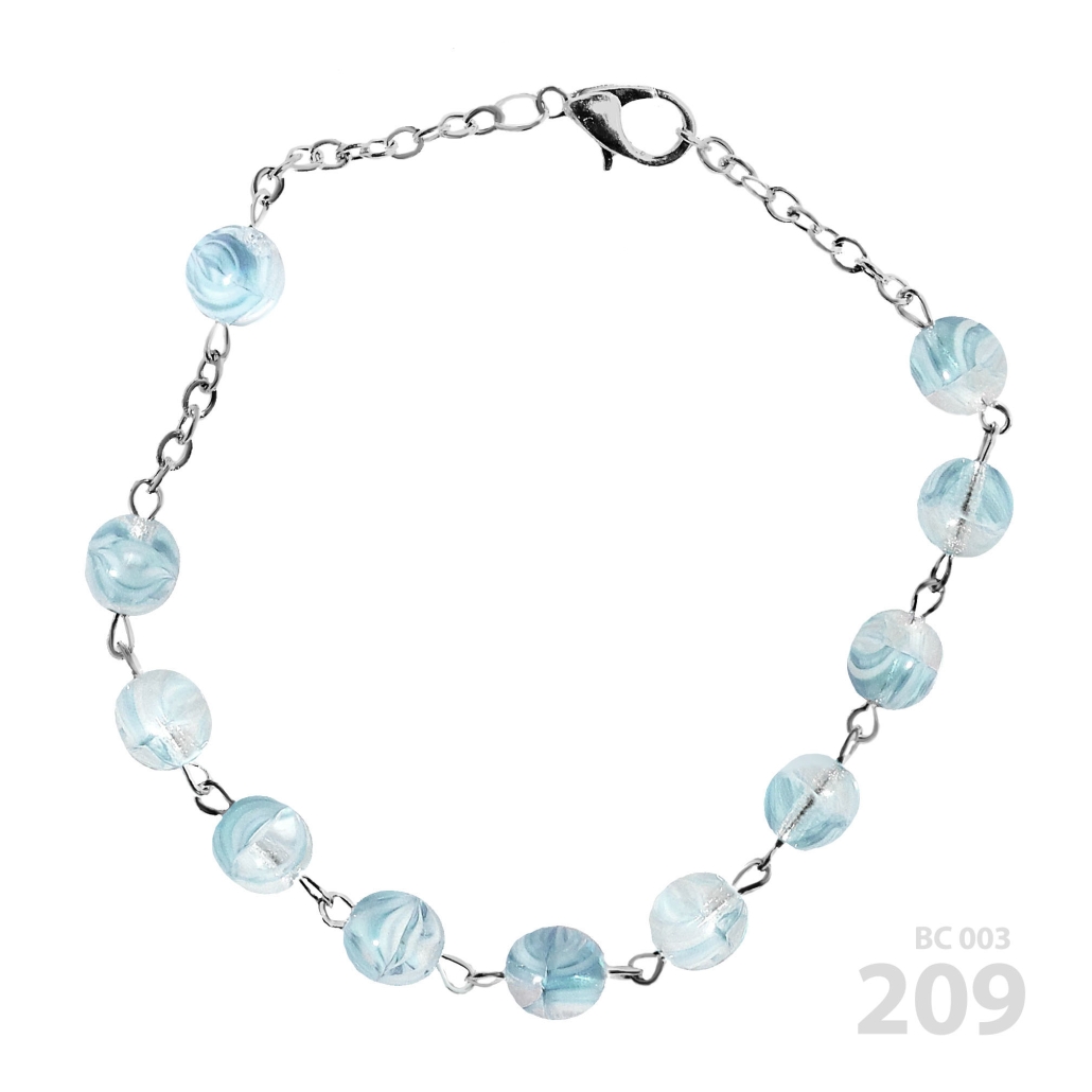 Smooth veined crystal set of ten rosary bracelet 11 beads Ø 7 mm with silver brass coated string and chain