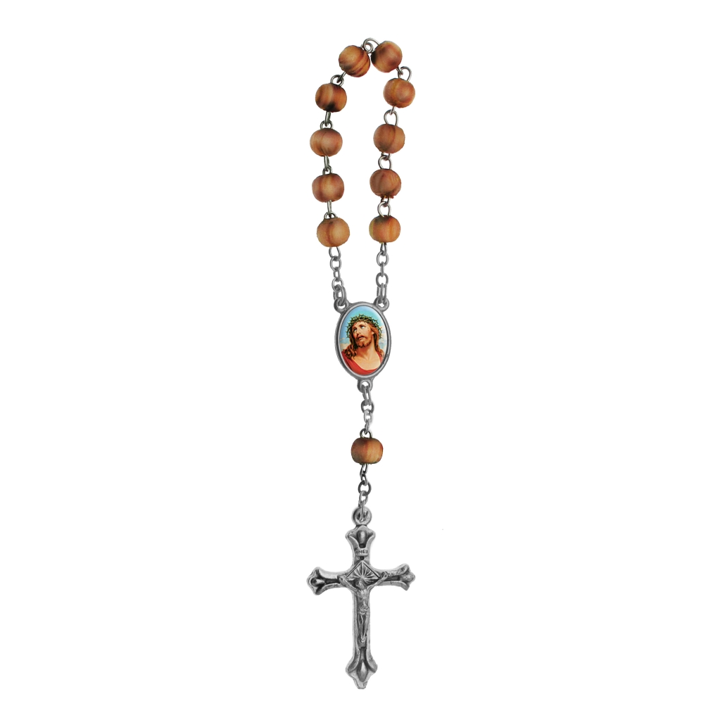 Veined wooden set of ten rosary 11 beads Ø 5 mm with brass string and chain, metal cross and cruise; silver coated. Optionally cross – cruise 2 photos 9×13 mm