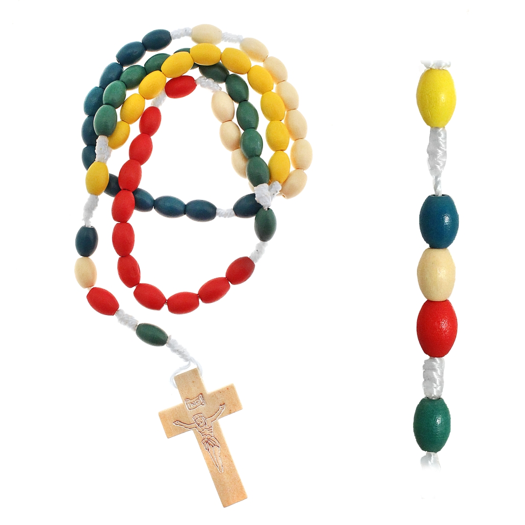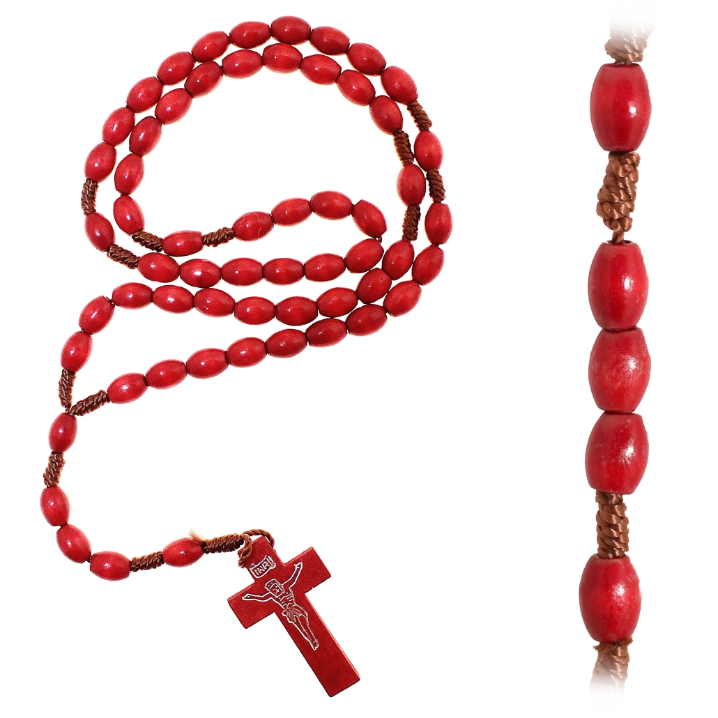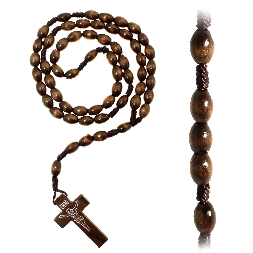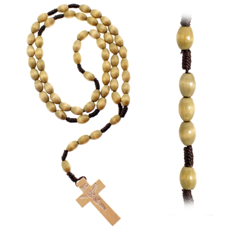 Oval wooden rosary 59 beads 7×10 mm setting with cord
