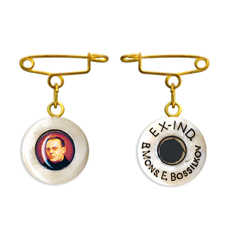 • Medaglietta in resina tonda con ex indumentis (es. Beato Bossilkov)