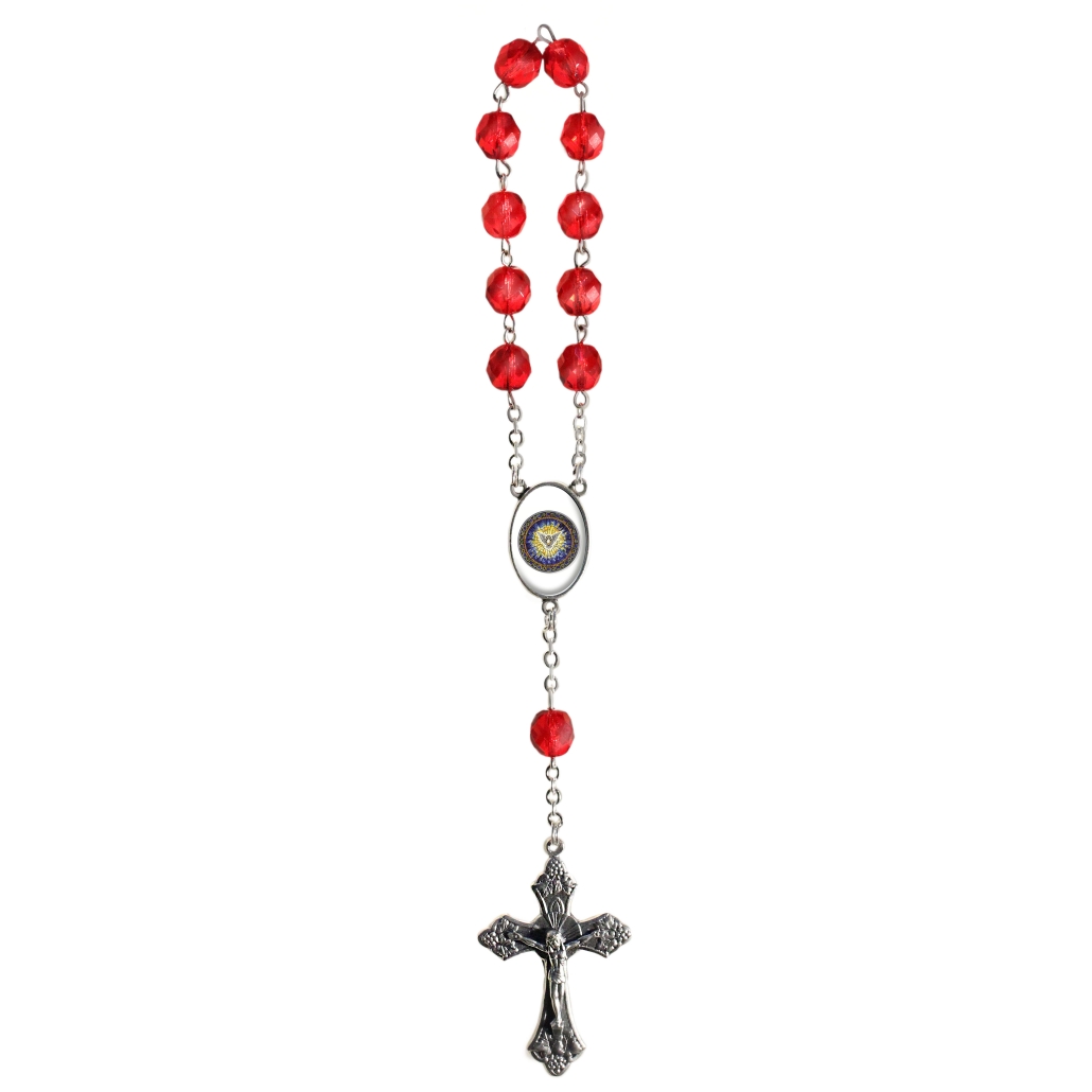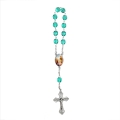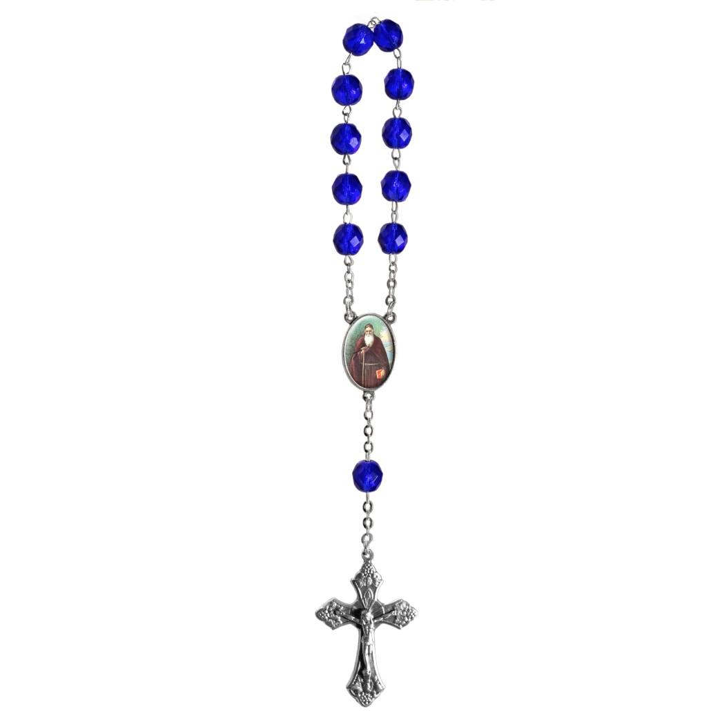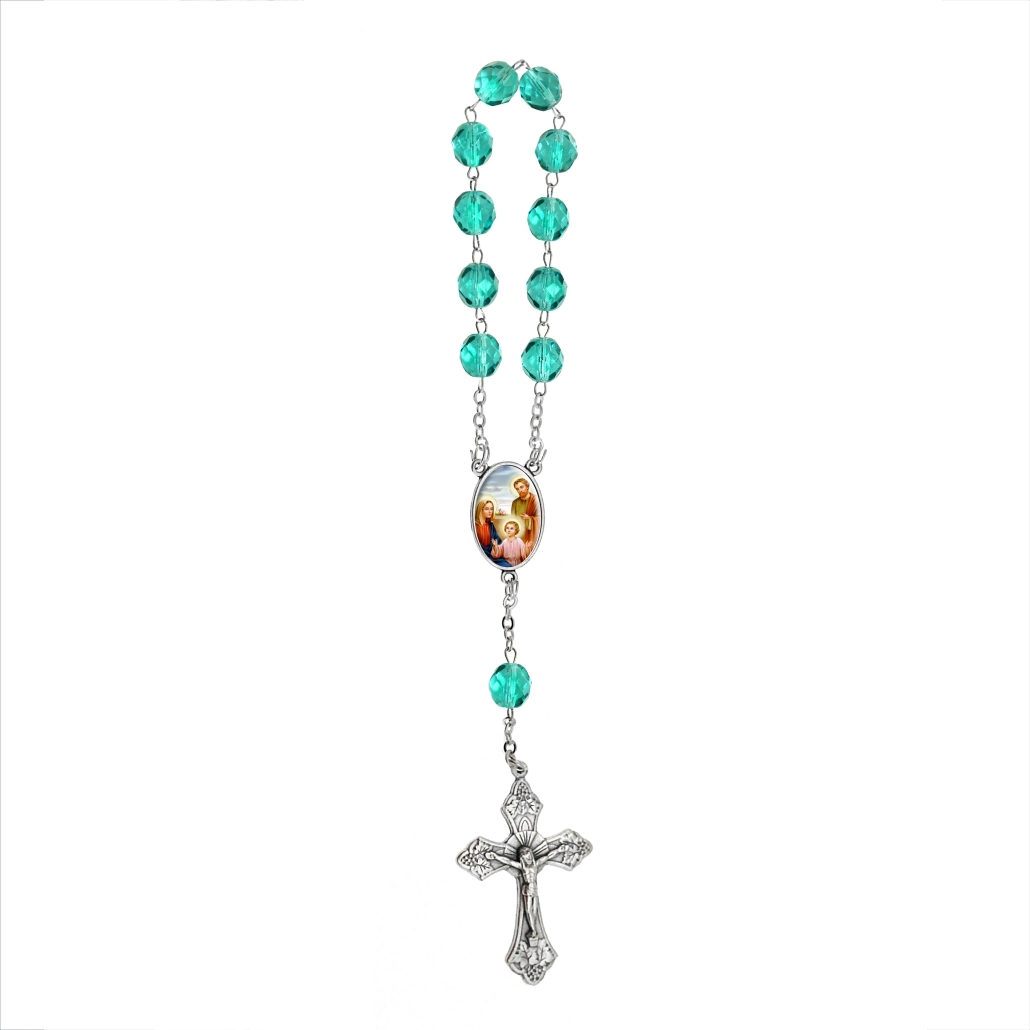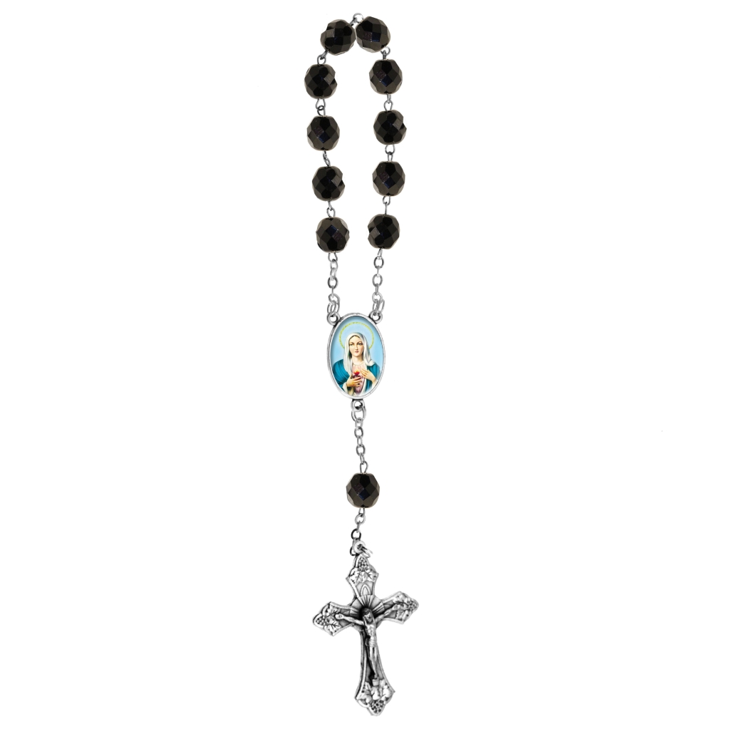 Decenario rosario 1 tramo 11 cuentas en cristal multifacetico Ø 8 mm malla en latón, cruz y centro metalico; todo patinado plata. Cruz a eleccion – centro