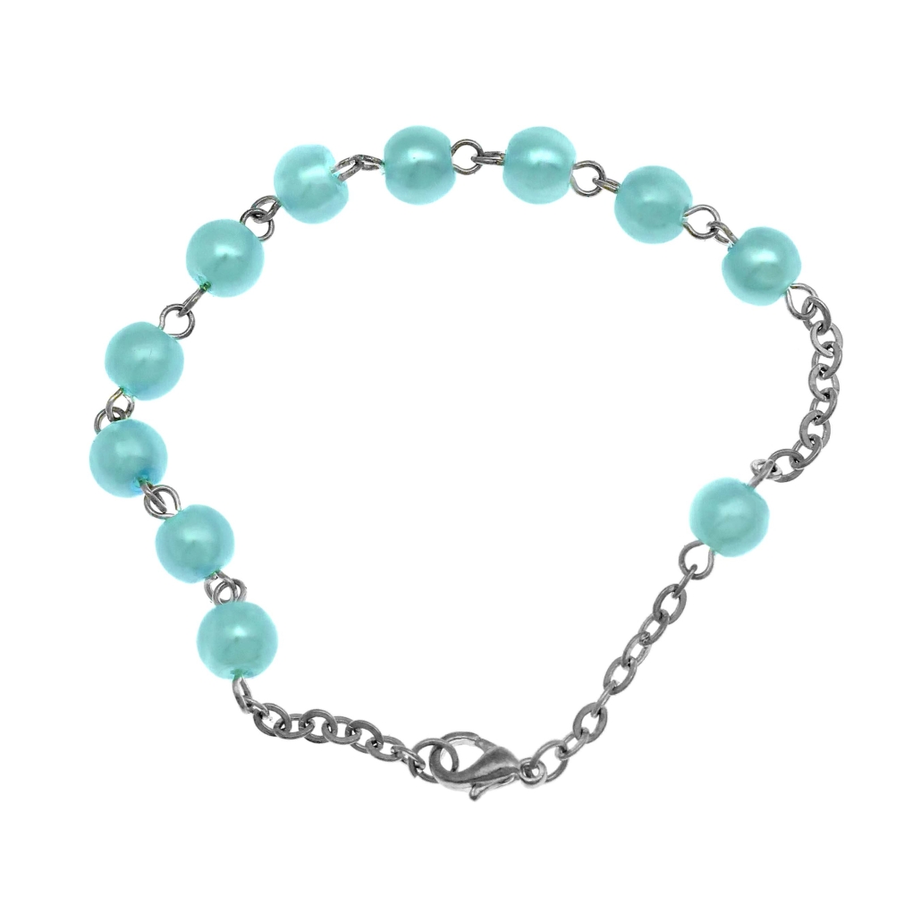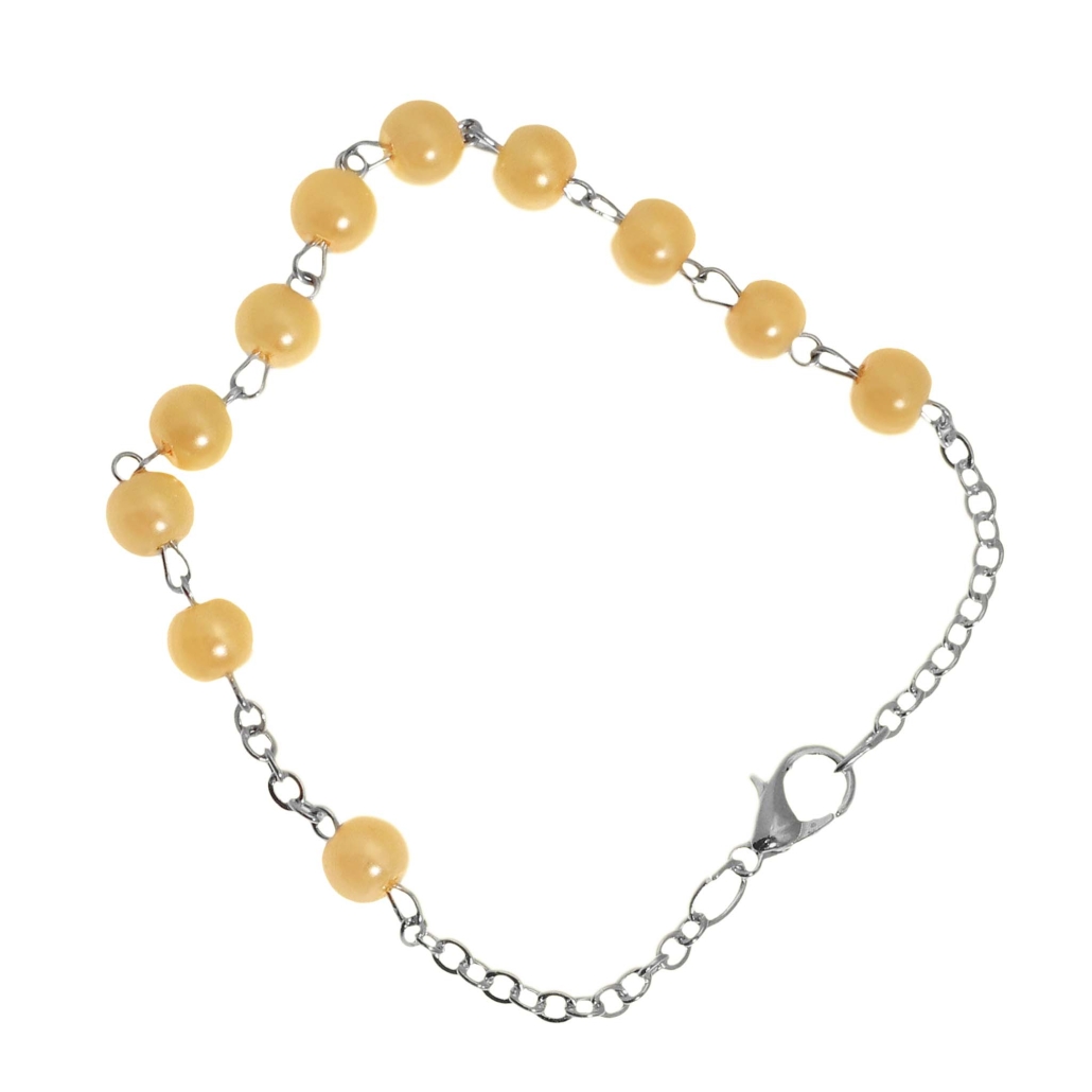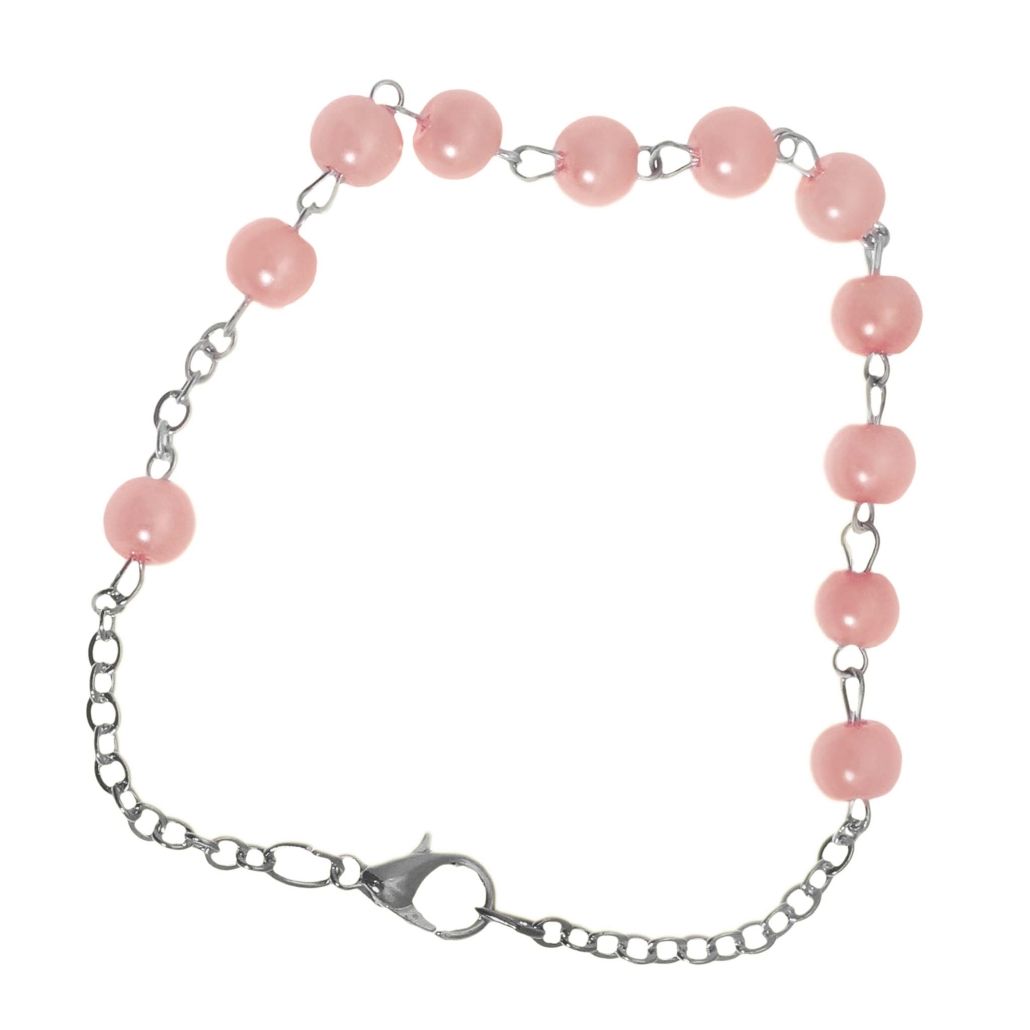 Pulsera decenario rosario 1 tramo 11 cuentas en vidrio perlado Ø 6 mm cadena en laton patinado plata