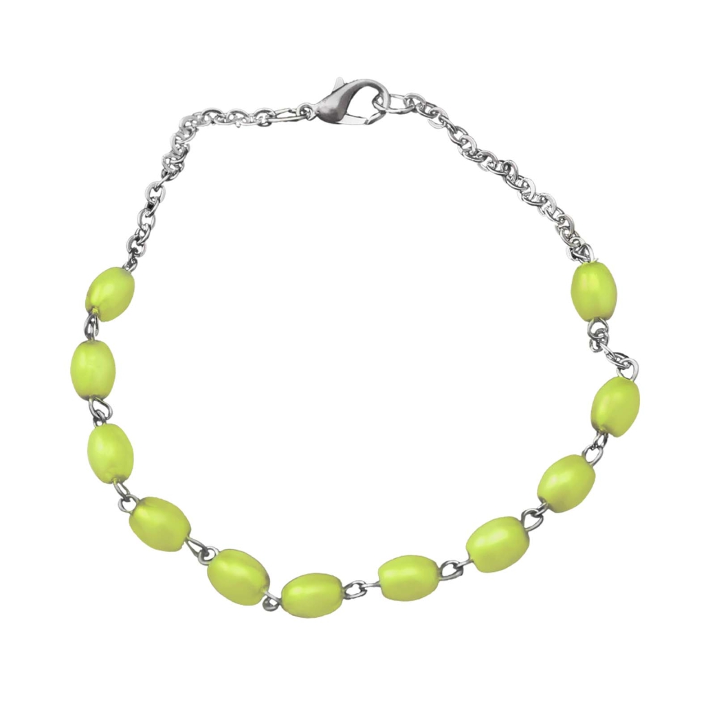 Pulsera decenario rosario 1 tramo 11 cuentas en vidrio perlado ovalado 5×7 mm cadena en laton patinado plata