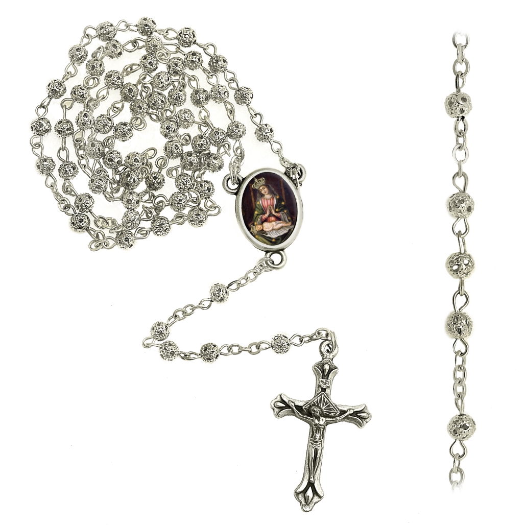 Rosario en laton plateado imitacion filigrana Ø 4 mm