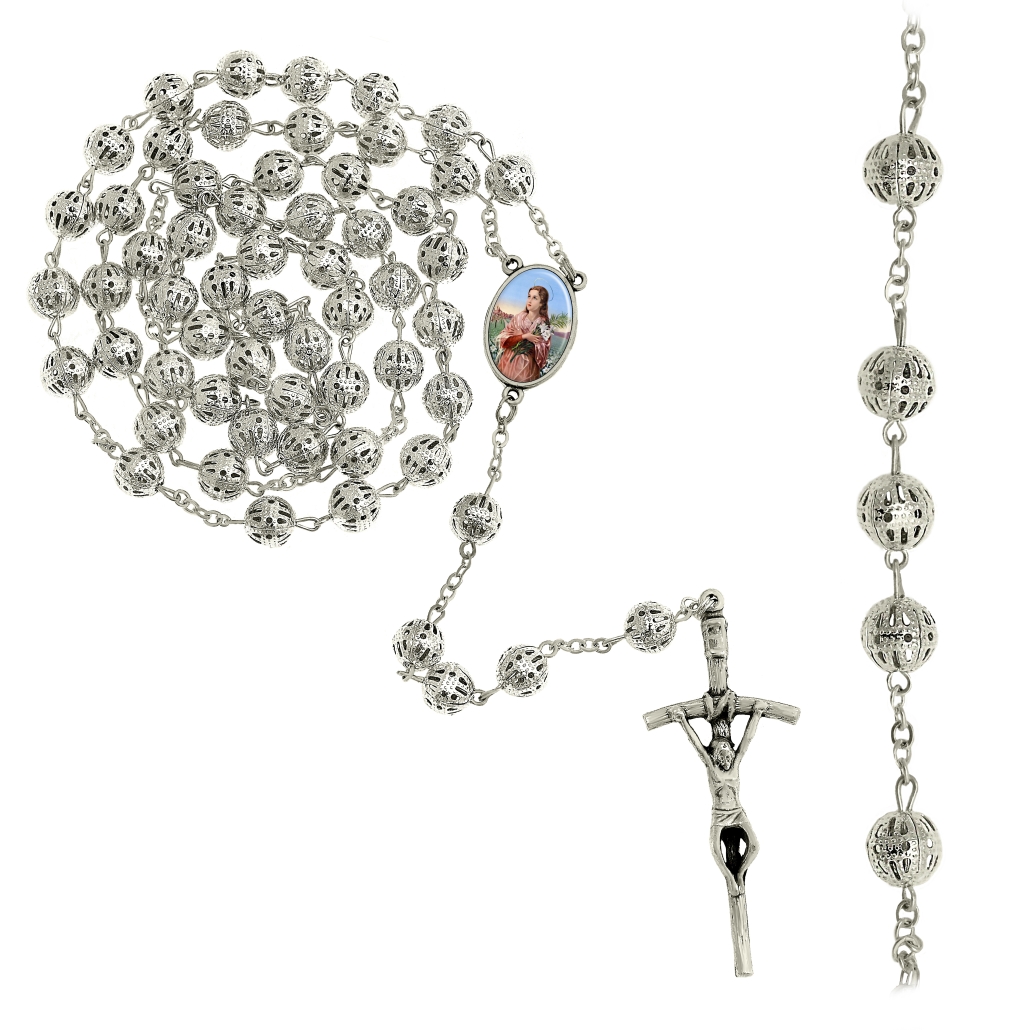 Rosario en laton plateado imitacion filigrana Ø 8 mm