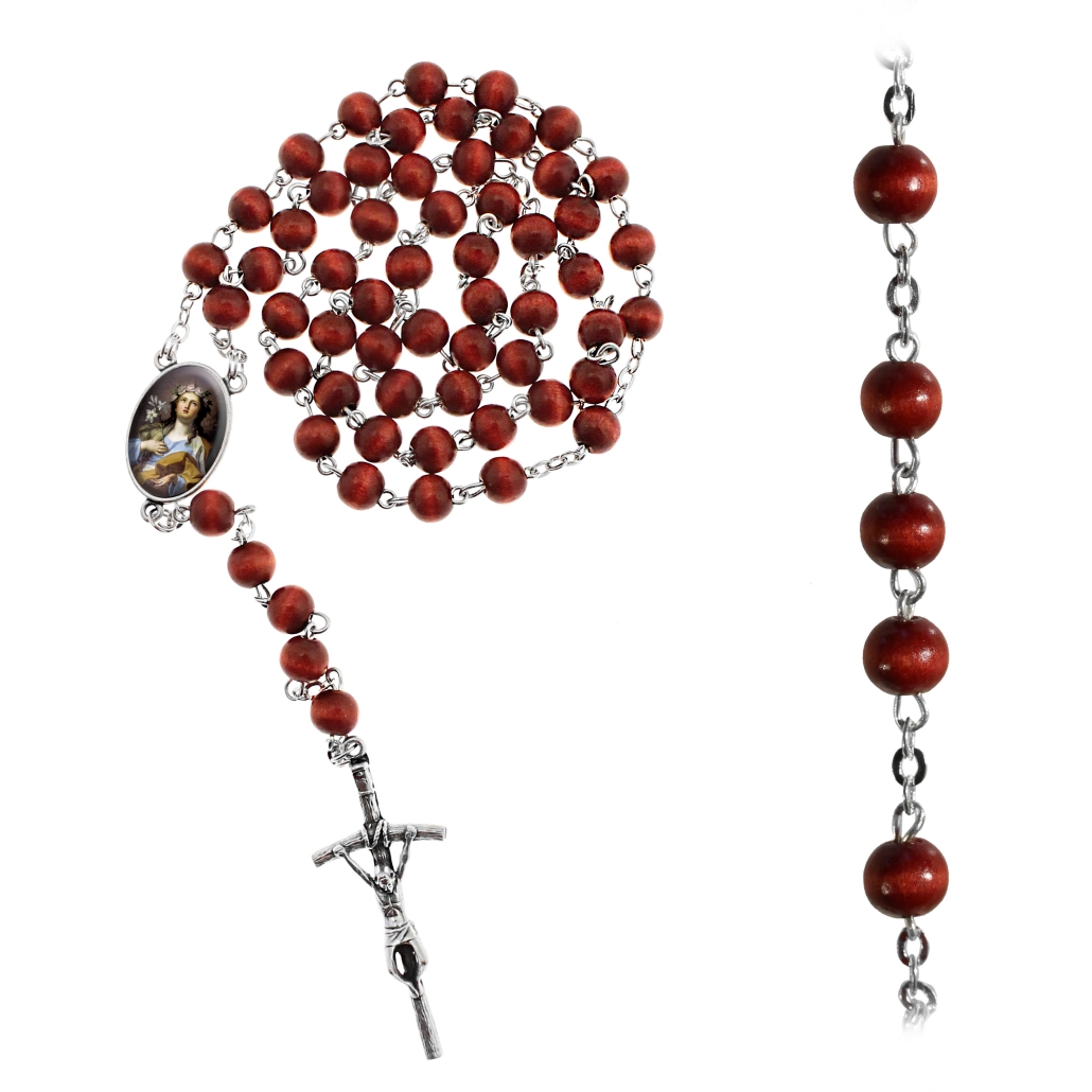 Rosario en madera ovalado 7×10 mm cruz y centro personalizable (ej. Madre...