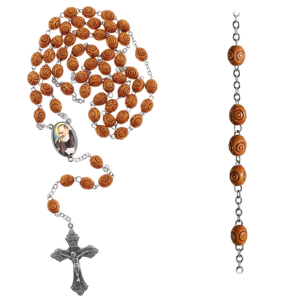 Chapelet 59 perles en bois transformé oval 7×9 mm avec fil et chaîne en cuivre et croix et croisière en métal; tout patiné argent. Croix au choix – Croisière 2 photos 12×18 mm