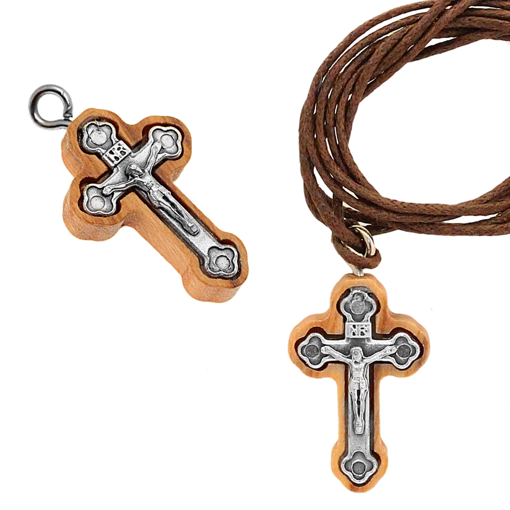Croix en bois d’olivier et crucifix en métal 21×17 mm