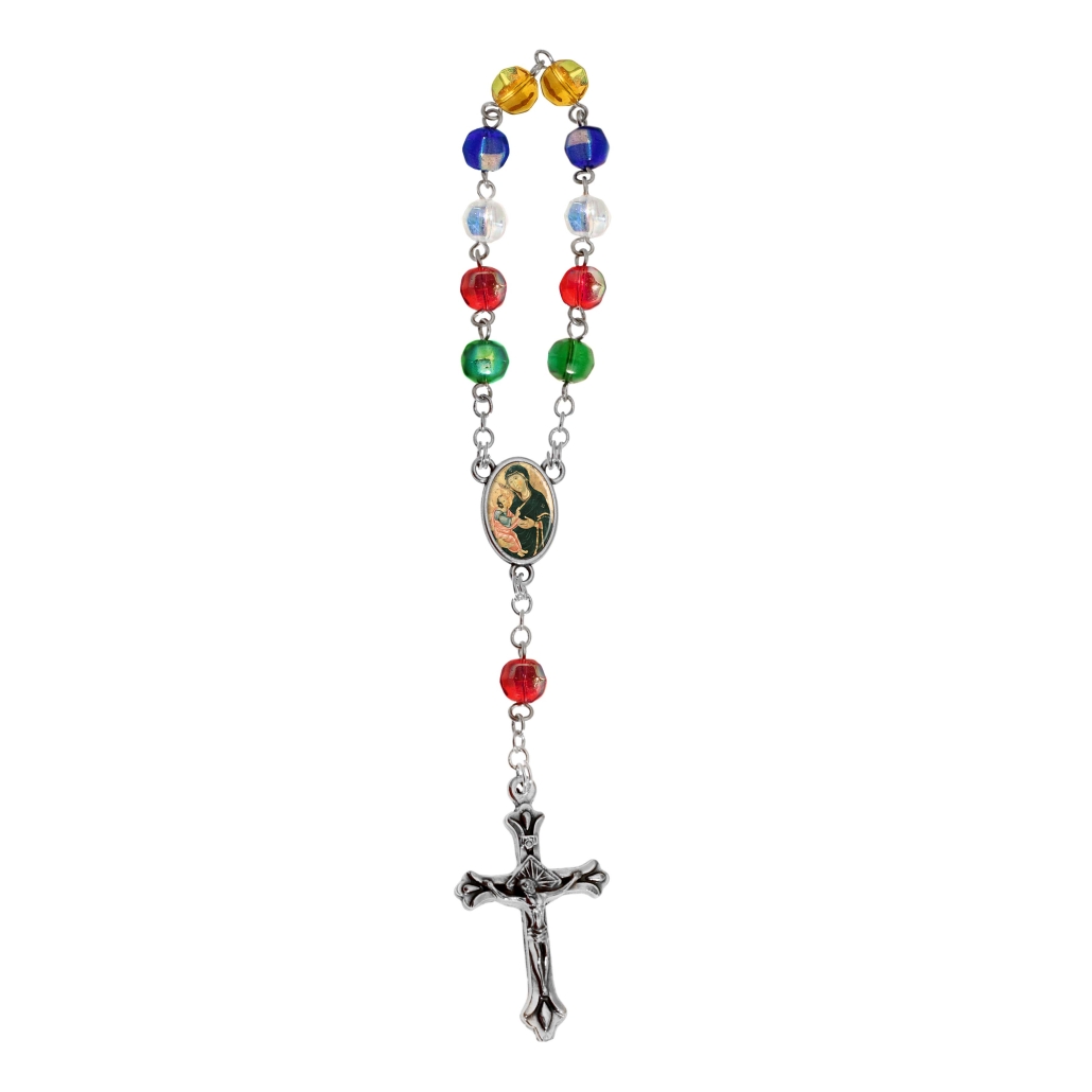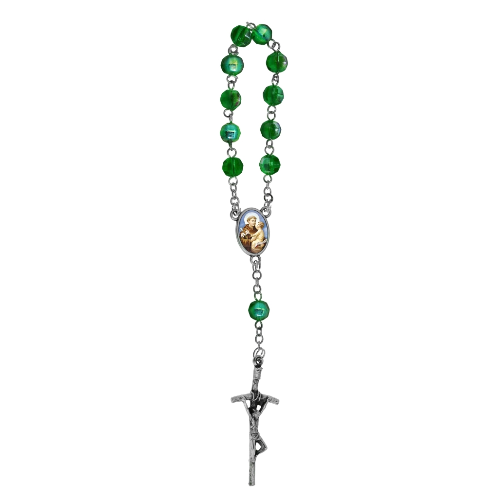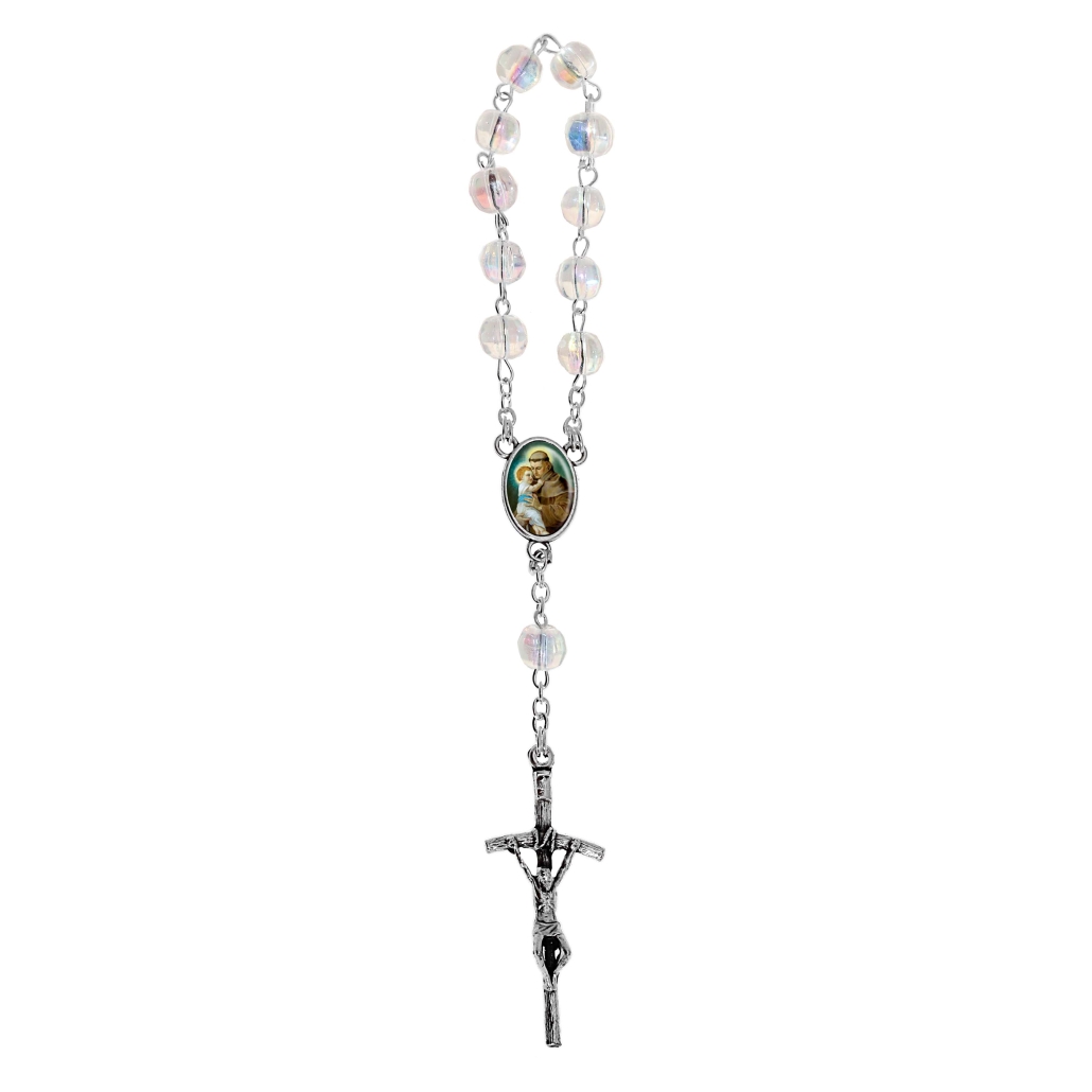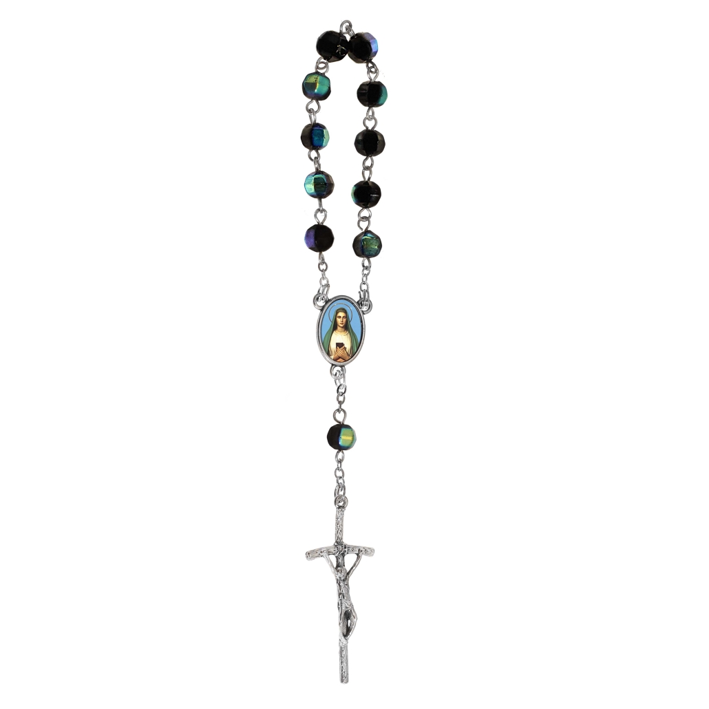 Dizaine chapelet 11 perles en verre à facettes avec un réflexe bolean Ø 6 mm avec fil et chaîne en cuivre et croix et croisière en métal; tout patiné argent. Croix au choix – Croisière 2 photos 9×13 mm