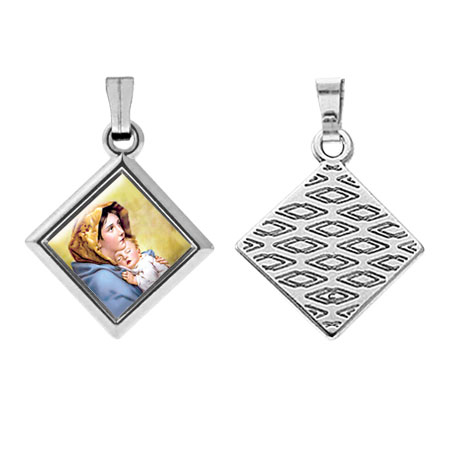 Medaglietta devozionale in metallo romboidale nichel con fascetta