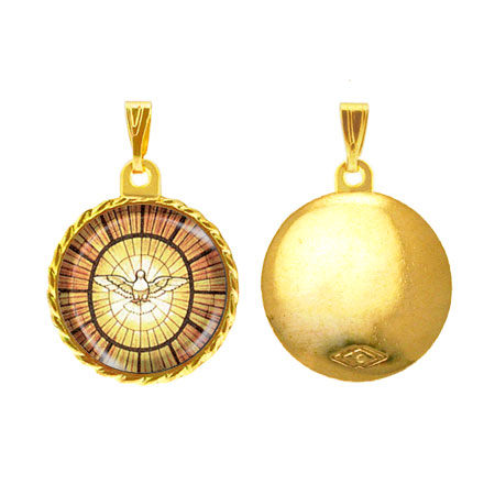 Medaglietta devozionale in metallo tonda dorata con fascetta