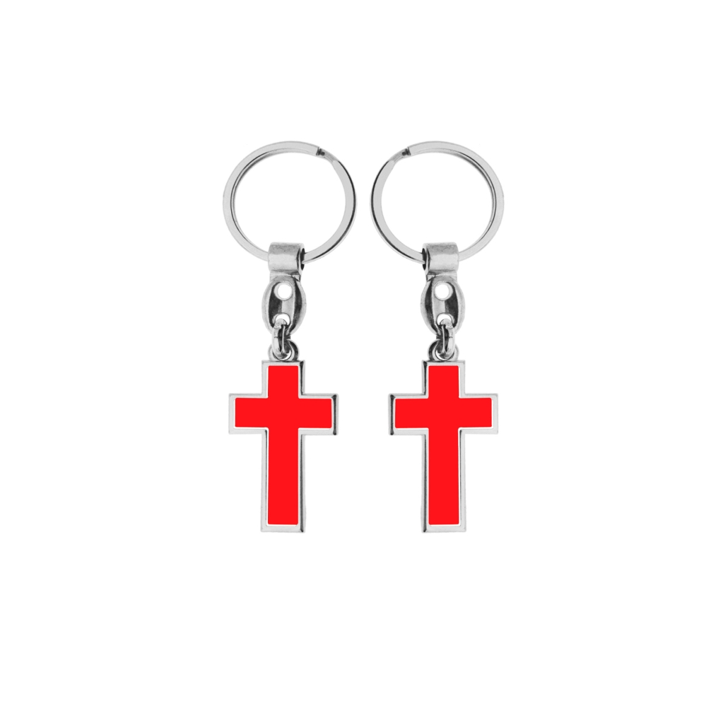 Portachiavi in metallo a croce nichel con smalto